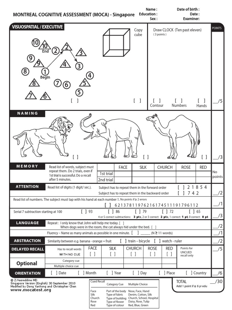 Moca Test English Singapore Pdf Cognitive Neuroscience Epistemology